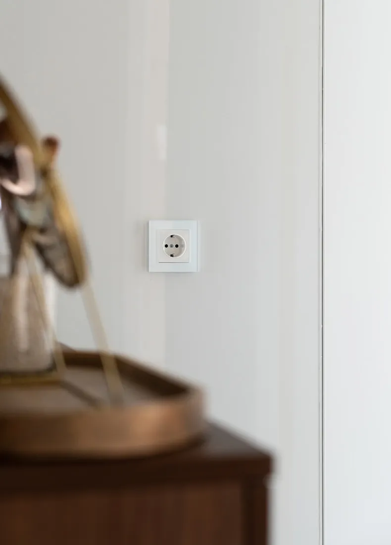 Идеальным дополнением к светлым стенам обновленного интерьера стали электроустановочные изделия Werkel™. Минималистичные белые механизмы (выключатели и розетки) гармонично сочетаются с рамками из закаленного стекла серии Favorit, которые подчеркнули современный стиль помещения.